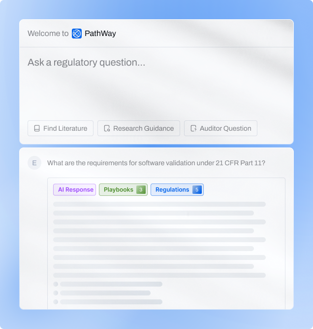 Get instant alerts when new regulations are published globally, then use AI-powered analysis to understand exactly what they mean for your specific devices. No more spending days deciphering if a 100-page guidance applies to you. Pathway delivers clarity in minutes, not weeks.